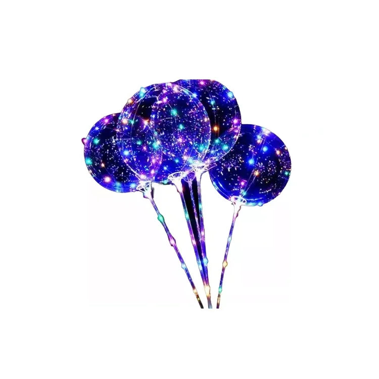 Globos transparentes con luz. Contiene: 5 unidades. Material: PVC. Iluminación LED colorida Cada globo necesita: 2 pilas AA (no incluidas). Altura de la base: 70cm. _______________________________
