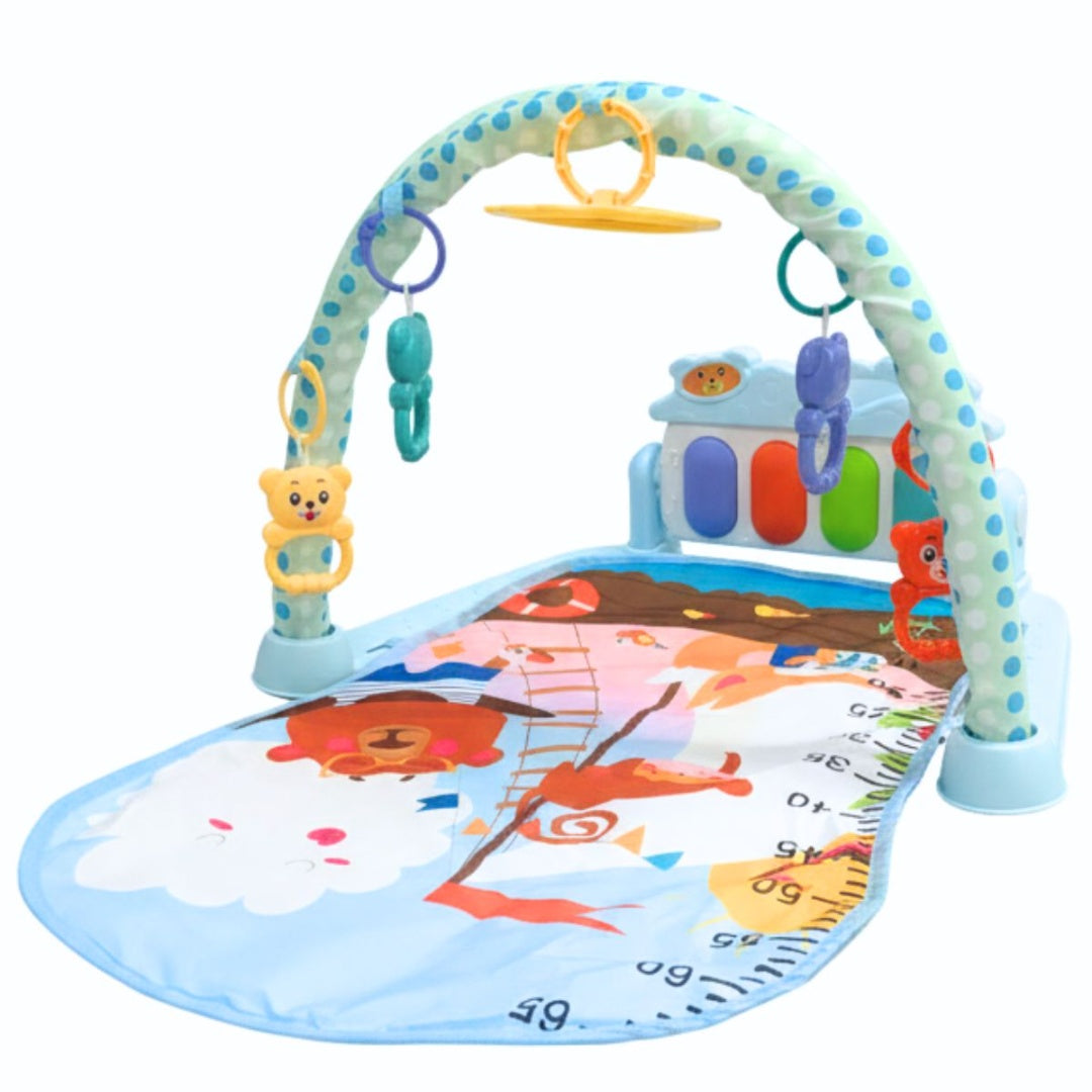 Cuenta con un piano musical, juguetes colgantes de colores y una alfombra suave, lo que ayuda a estimular los sentidos, la coordinación y el desarrollo motor.