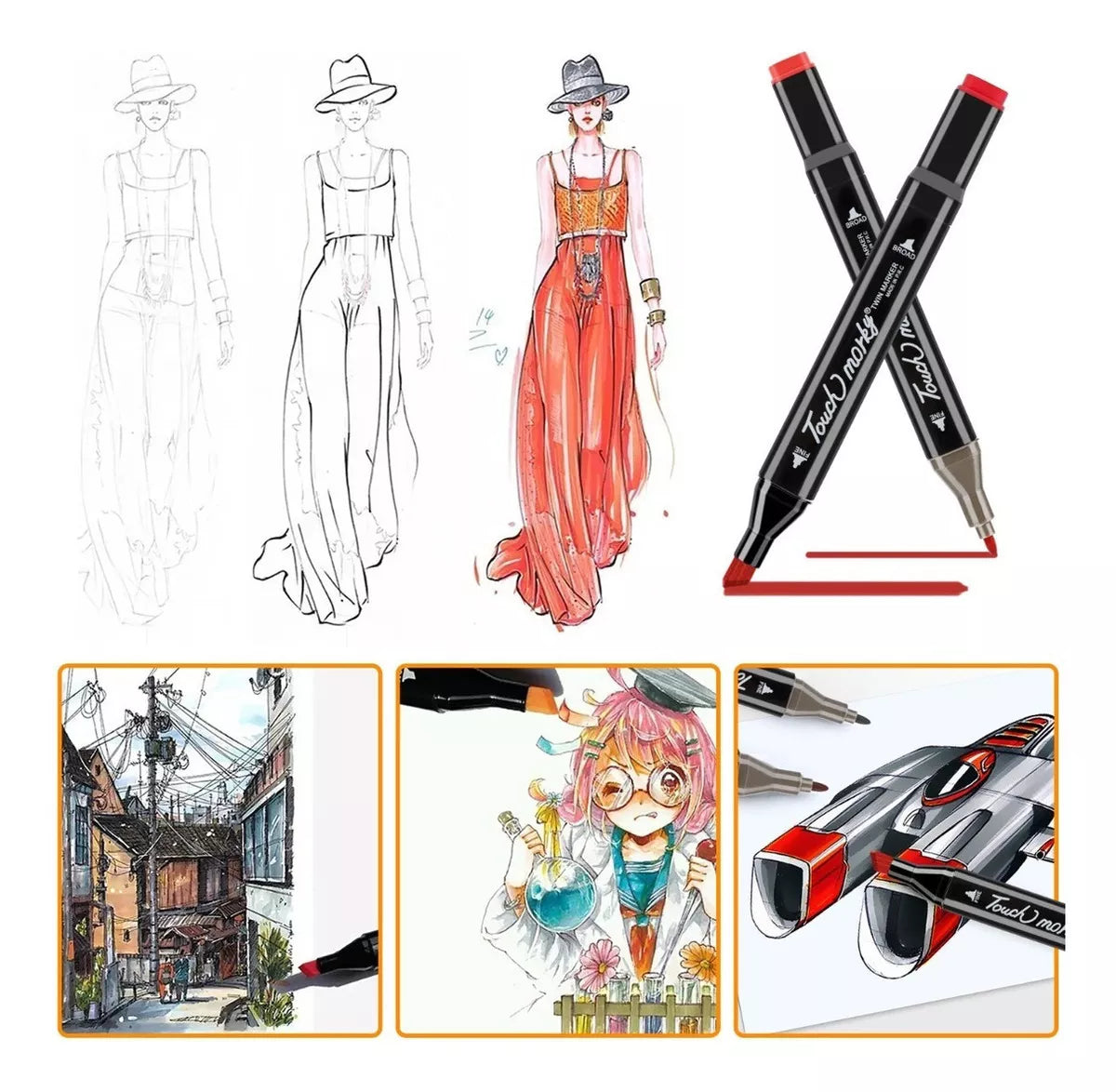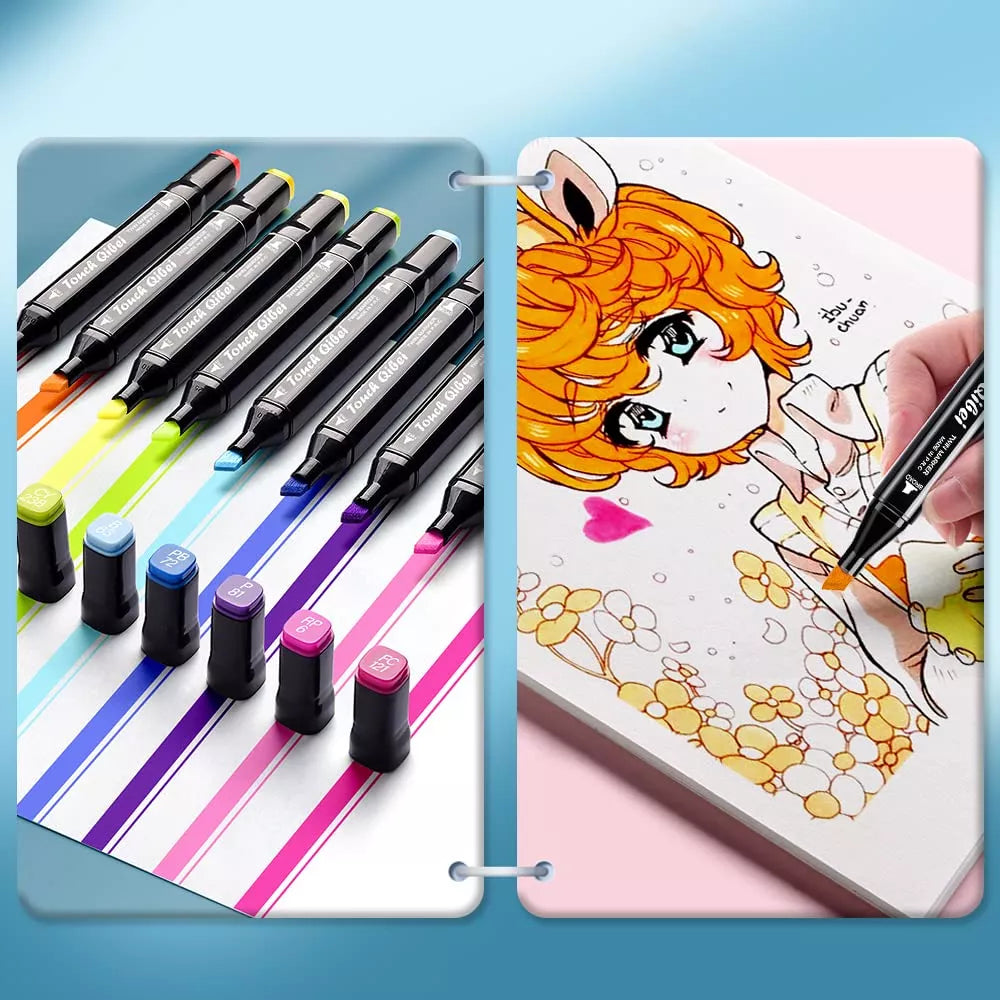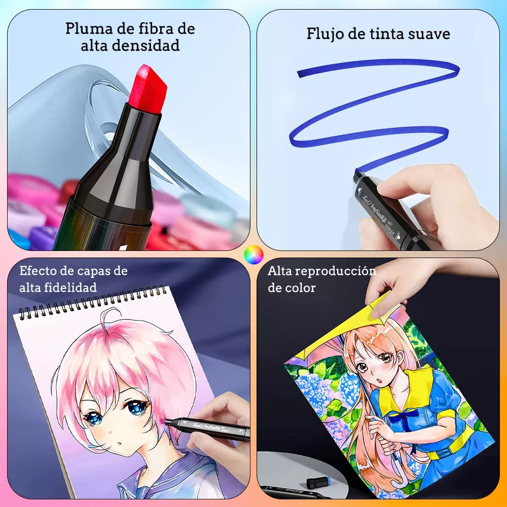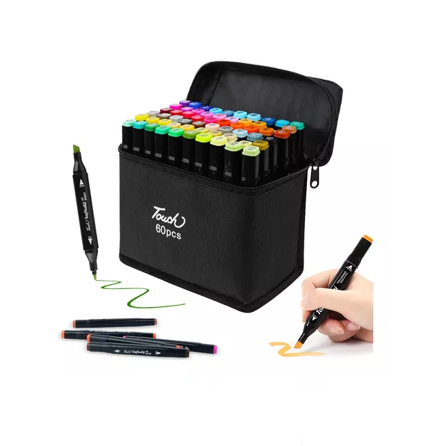 •60 Colores - Satisfacer Todas las Necesidades: Los marcadores doble punta pincel cuentan con 60 colores, una variedad que puede satisfacer sus necesidades de diferentes colores. Se secan rápidamente y no es fácil que se desvanezcan, lo que los hace perfectos para el diseño de escritura, dibujo (animación/paisaje/vestuario/interior/arquitectura/estudiante/producto) y Sketch de artista. •Diseño de Punta Doble: Los marcadores utilizan dos diseños de punta, una ancha (6 mm) para sombrear grandes áreas y una fina (1 mm) para trazos precisos, proporcionando una gran versatilidad y flexibilidad para pintar. Permiten crear fácilmente una variedad de estilos, bocetos y patrones. •Material Seguro & Ecológicos: Los marcadores de 60 colores están hechos de tinta de alta calidad, seguros y ecológicos. Sin decoloración y ácido libre, adecuados para niños. •Fácil de Usar y Organizar: Los marcadores doble punta pincel de 60 colores están codificados por colores, lo que facilita su organización y mantenimiento. Además, vienen con una bolsa para facilitar su transporte. Gradiente natural, transición suave Los 60 colores estándar se superponen a una variedad de colores, y la combinación de colores es rica, lo que hace que el color del trabajo sea más natural e inspira la creatividad. ESPECIFICACIONES: Color: 60 colores Longitud: 15,4 cm Dos cabezas de pluma: cabeza oblicua 6 mm cabeza redonda 1 mm Características del producto: marcadores a base de aceite (contiene una pequeña cantidad de alcohol) Para evitar que el alcohol se volatilice, lo que resulta en tinta seca y mala escritura, cierre bien la tapa después de su uso. PAQUETE INCLUIDO: 1x 60 colores juego de marcadores 1x Bolsa negra NOTA: 1. Recomendado para niños mayores de 3 años 2. Por favor, cierre la tapa después de su uso para evitar que la tinta se evapore.