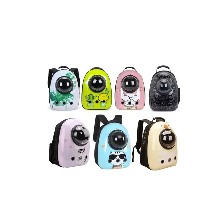 Mochila transportadora de mascotas. Medidas: 42x30x23cm. Soporta hasta 12kg. Con ventilación. Es apto para cabinas de avión. Es a prueba de agua. Tiene bolsillo lateral. Material mochila: tela oxford Material estructura transparente: policarbonato. Varios diseños. _______________________________