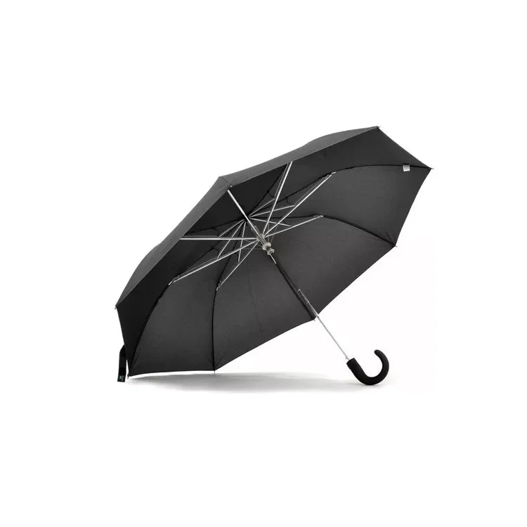 Paraguas automático reforzado Estructura de aluminio, con puño curvo. Material: 100% Poliester. Botón para abrir y cerrar en menos de 5 segundos. Diámetro: 90cm. Largo: 40cm. Color: negro. _______________________________