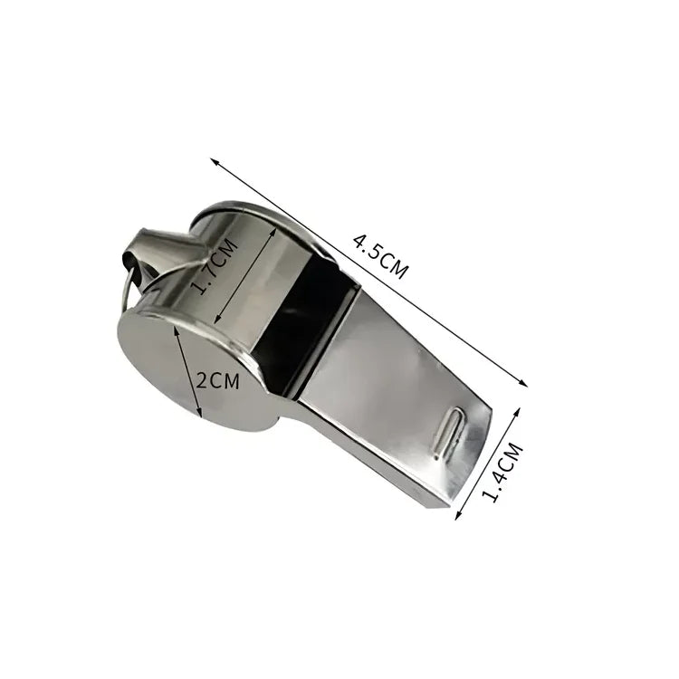 Este pack incluye 12 silbatos de árbitro de metal profesional con cuerda, capaces de producir un sonido de gran alcance. Son ideales para aficionados a los deportes de pelota, situaciones de emergencia, socorristas, autodefensa, supervivencia, entrenadores deportivos, o cualquier persona que necesite un silbato de seguridad. También son perfectos para fiestas, vacaciones y como relleno de bolsas de regalo. Además, pueden ser utilizados para entrenar a mascotas y otros animales. Están fabricados en acero inoxidable de alta calidad, lo que los hace seguros, duraderos y resistentes. Cada silbato viene con un cordón para colgarlo alrededor del cuello o en un soporte de pared, facilitando así su uso. DATOS TECNICOS: - Medidas: 4,5 cm de largo. 1,4 cm de ancho. 2 cm de ancho del pico del silbato. - Material: Acero inoxidable. - Color Silbato: Plateado. - Color Correa: Amarillo - Incluye Bolita.